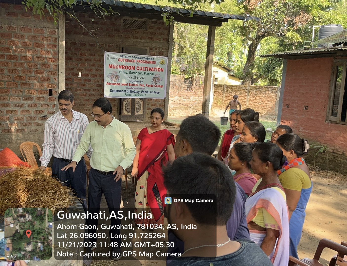 | Outreach Programme on Mushroom Cultivation | Organized at Garoghuli, Pamohi in collaboration with department of Botany. Participants were marginal farmer and house wife | 21-11-2023 | View | |